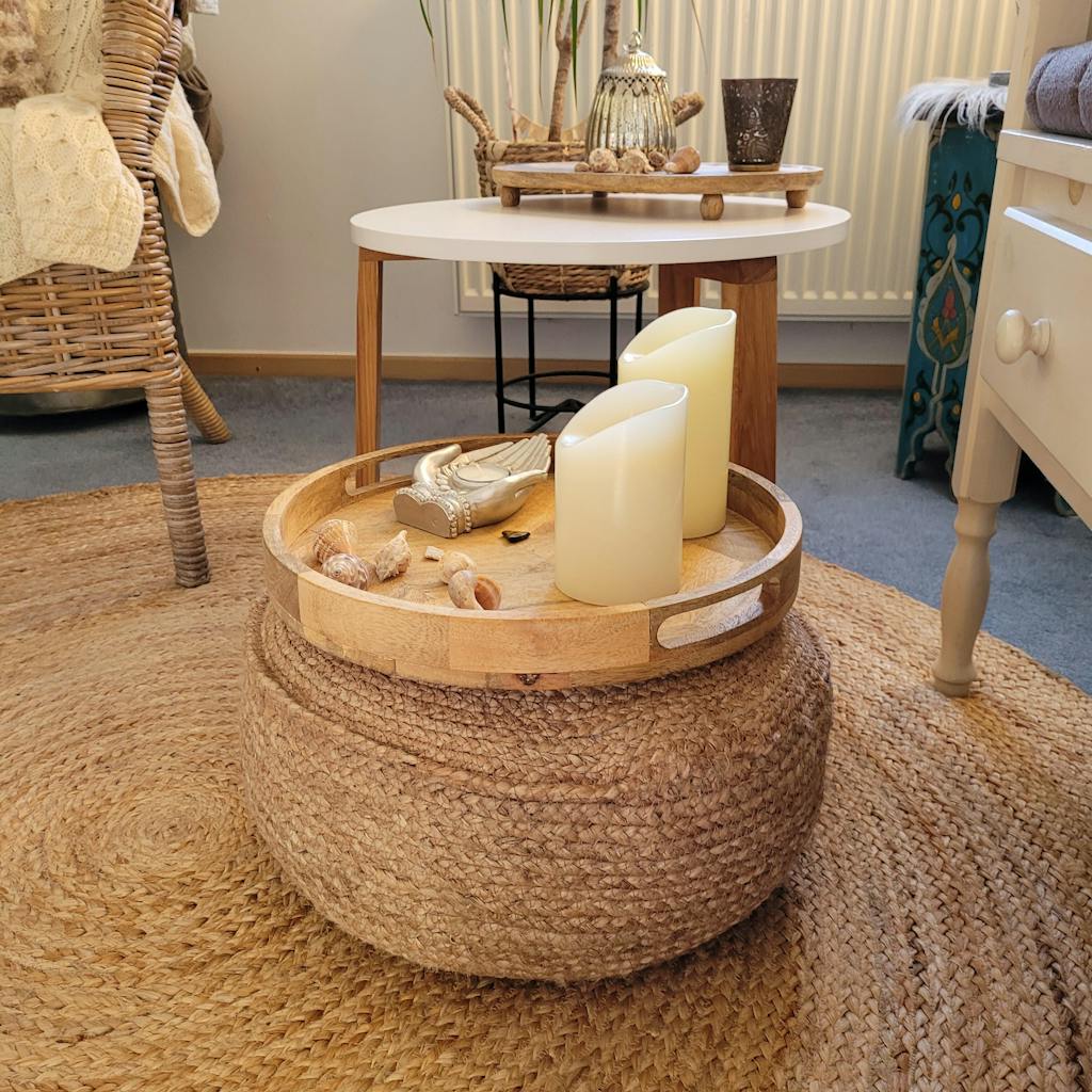 Handgeflochtener Jute Pouf Hocker – Rundes Boho Sitzkissen für natürliche Geborgenheit